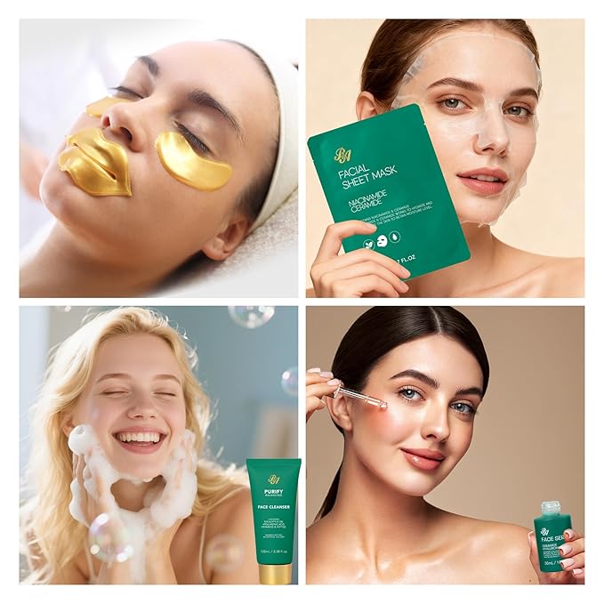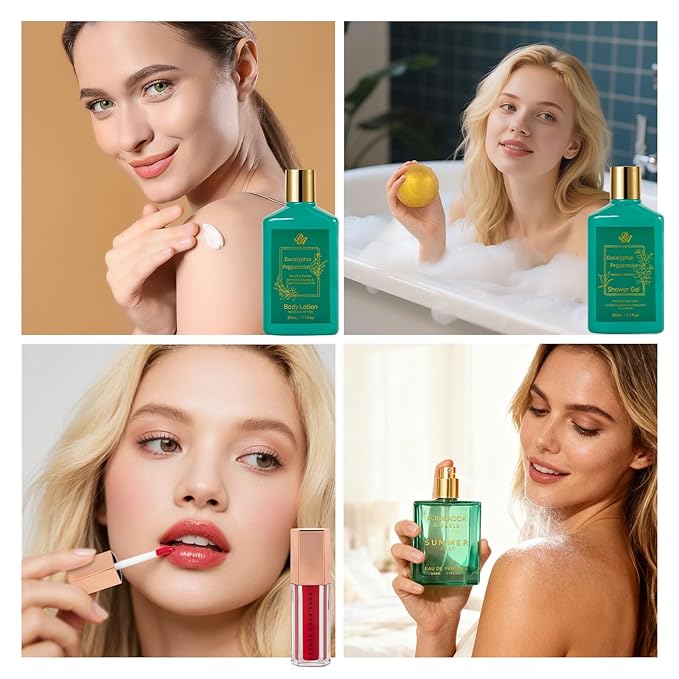 - Head To Toe Skin Care: Let this skin care kit pamper your skin! Clay mask and gel cleanser to cleanse your skin. Under Eye patches for reduce dark circles, eye bags. Gel lip mask and lip gloss for plump lips. Sheet masks, face cream, face serum and hand cream for nourished, hydrated skin. Bath bombs to pleasure the body and mind. Perfume ensures that the delightful fragrance lasts all day, keeping you fresh and confident