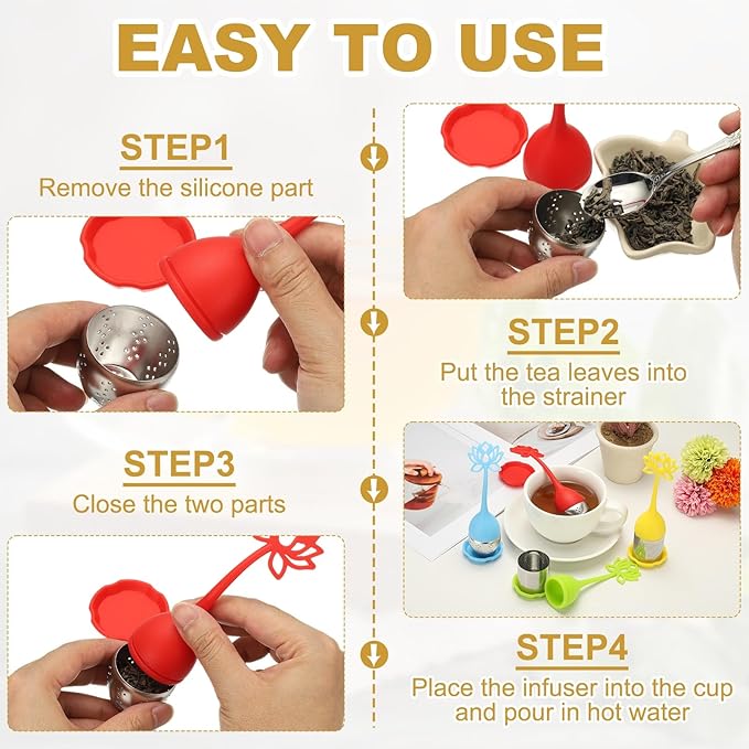 - Durable Material: This tea infuser is crafted from safe silicone and 304 stainless steel, ensuring it withstands reliable daily use. The mesh filter is rust-proof, scratch-resistant, and drop-resistant, so it remains reliable over time.