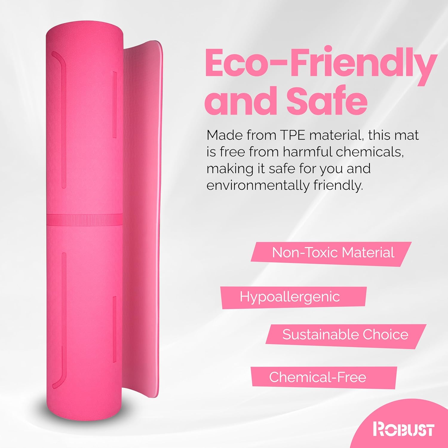 - 3. Eco-Friendly TPE Material: Crafted from eco-conscious TPE material, this yoga mat is devoid of PVC, latex, and harmful chemicals, offering a safe and sustainable choice for both you and the planet.