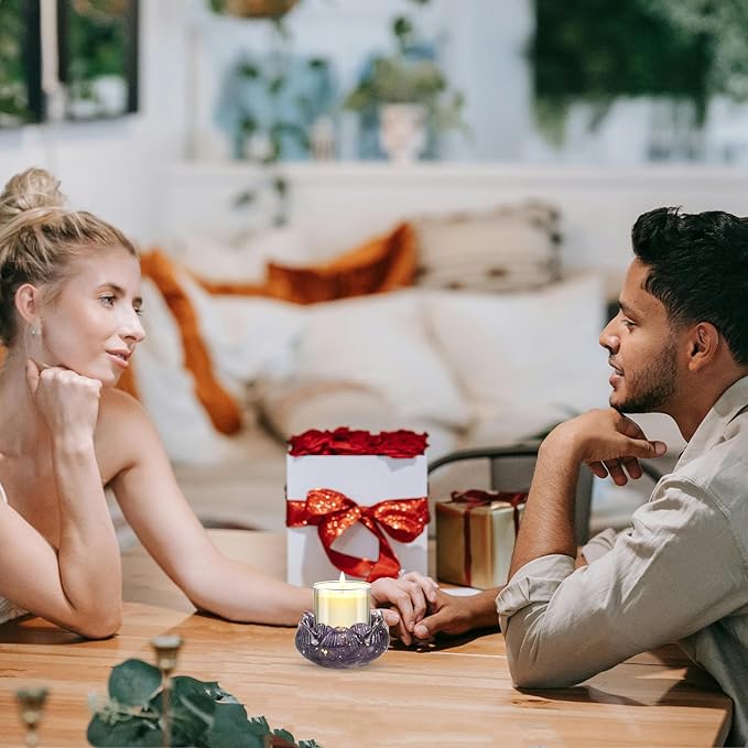 Crystal Lotus Incense Holder Set, Decorative Lotus Flower Decor Bowl 3.15x3.15x1.5 Inch, Incense Sticks Cones Holder with Ash Catcher (Purple)