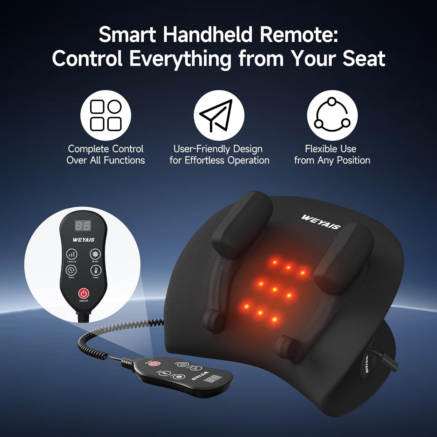 - Intelligent Remote Control & 40min Runtime:The rechargeable neck and shoulder massager with heat lasts up to 40 minutes, offering convenience with a multifunctional remote control to adjust power, intensity, and heating settings for neck pain relief with just one button.