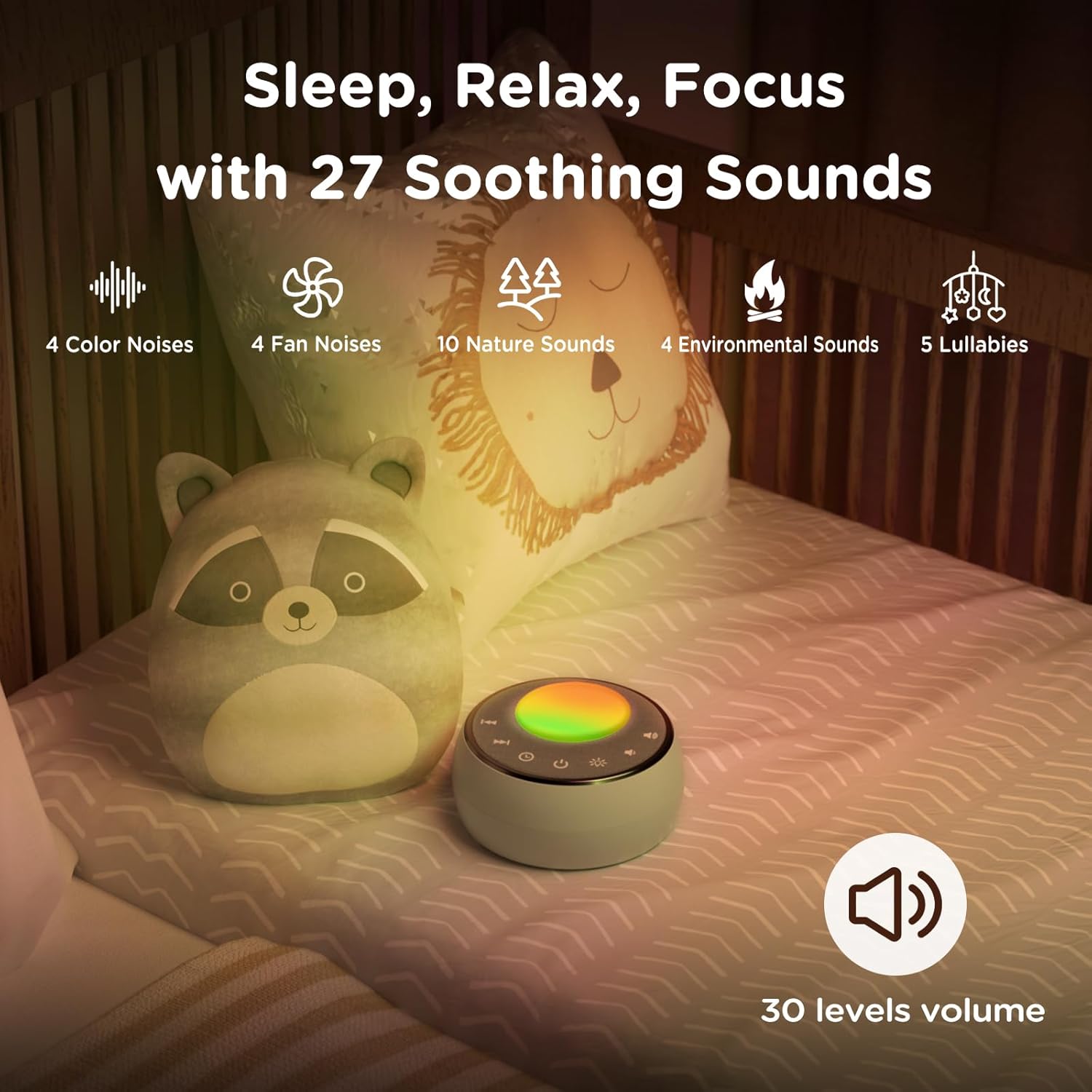 Peakeep Sound Machine with Sleeping Light for Baby, White Noise Lullaby Hush Heartbeat Fan 27 Sounds, 3 Dimmers Dimmable, Travel Battery Machine 30 Volume Loud, 25 Hours Continuous Audio (Aqua)