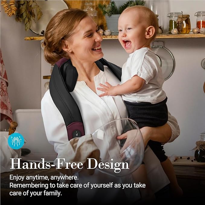 - 4D HAND-LIKE MASSAGE DESIGN:Upgrade your relaxation with our advanced neck and back massager. Featuring 4D kneading technology, it mimics deep human-like massages across a wider area from neck to shoulders. Engineered with 6 ergonomic nodes, it delivers powerful and continuous comfort to your neck and shoulders.