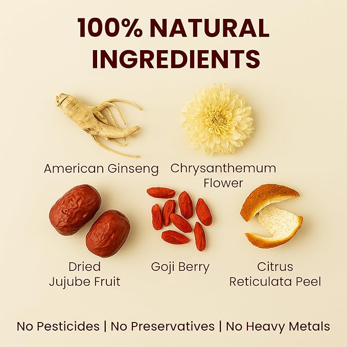 - Sensory Harmony with Time-Tested Botanicals: Crafted for those who appreciate subtle flavor and functional depth, this blend highlights the floral notes of goji berry chrysanthemum tea and the smooth character of chrysanthemum tea natural. Balanced with ginseng tea natural, it draws on traditional pairings like chrysanthemum and goji berry tea and goji berry chrysanthemum tea natural to offer a calming, aromatic infusion that complements mindful routines.