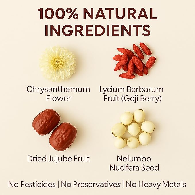 - ๐๐๐ฅ๐ฆ๐ข๐ง๐ ๐๐๐ซ๐๐๐ฅ ๐๐ฎ๐ฉ๐ฉ๐จ๐ซ๐ญ: This soothing blend is crafted to help you settle into a peaceful evening ritual through gentle, herbal comfort. Made with dried jujube, goji berry, and chrysanthemum, it delivers a smooth cup that eases the senses without caffeine. Whether you enjoy it as a warm hot tea, a nightly sleep tea, or a relaxing break between your favorite teas, it fits naturally into a mindful routine and also makes a thoughtful tea gift set option compared to everyday decaf tea blends.