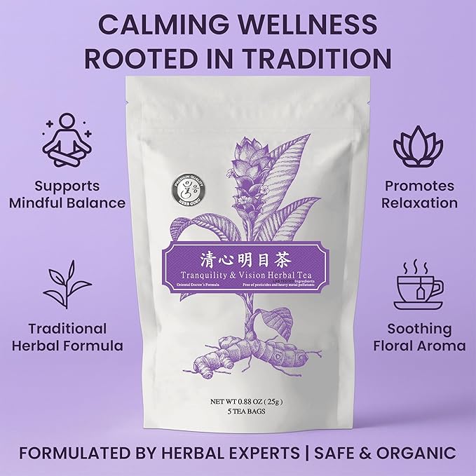 Tranquility & Vision Herbal Tea Blend with Dried Jujube Fruit, Goji Berry, Chrysanthemum Flower & Nelumbo Nucifera Seed | Relaxing Tea Bags | Premium Herbal Teabags & Gentle Sleepytime Teabags