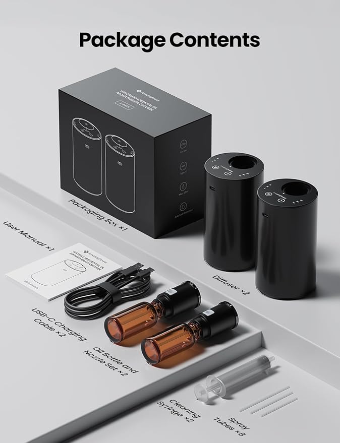 - 【Waterless Essential Oil Diffuser for Pure Aroma】Our advanced waterless diffuser technology transforms your favorite essential oils into a pure nano-mist without heat or water. Unlike traditional ultrasonic diffusers, it maintains the full strength and purity of each drop, offering a natural and convenient aroma experience. Perfect for those who want a scent diffuser that preserves essential oil integrity.