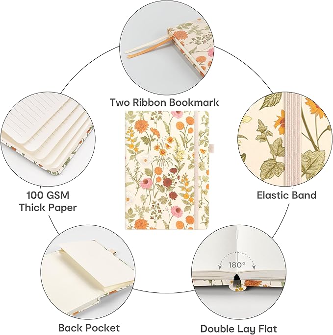 - 180° LAY-FLAT DESIGN: The lay-flat design allows for easy writing and ensures that you can utilize every page efficiently. Journaling, note-taking and planning has never been easier. 2 Bookmarks help you find important content faster