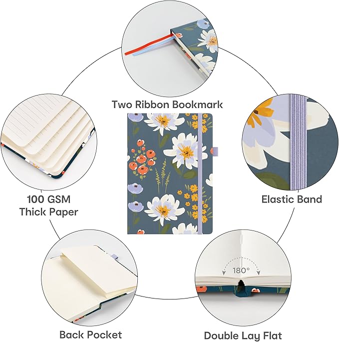 - 180° LAY-FLAT DESIGN: The lay-flat design allows for easy writing and ensures that you can utilize every page efficiently. Journaling, note-taking and planning has never been easier. 2 Bookmarks help you find important content faster