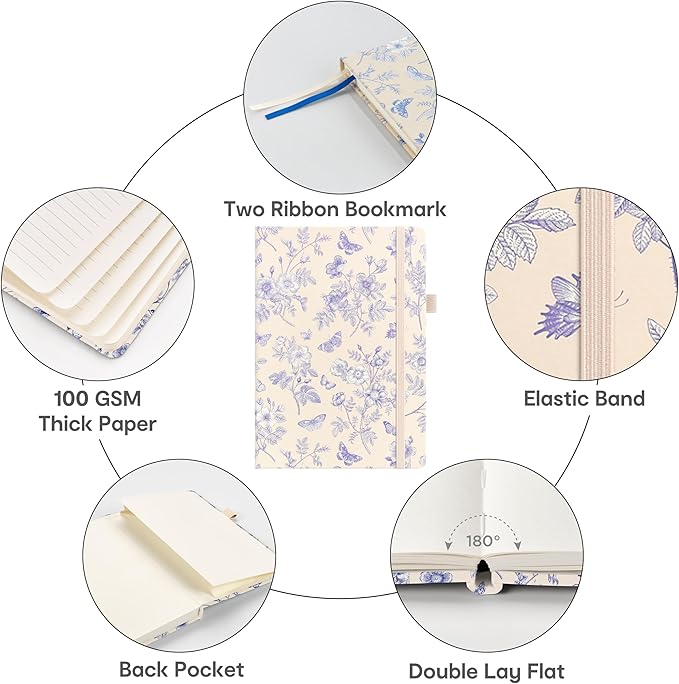 - 180° LAY-FLAT DESIGN: The lay-flat design allows for easy writing and ensures that you can utilize every page efficiently. Journaling, note-taking and planning has never been easier. 2 Bookmarks help you find important content faster