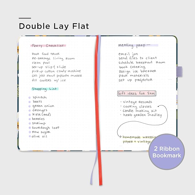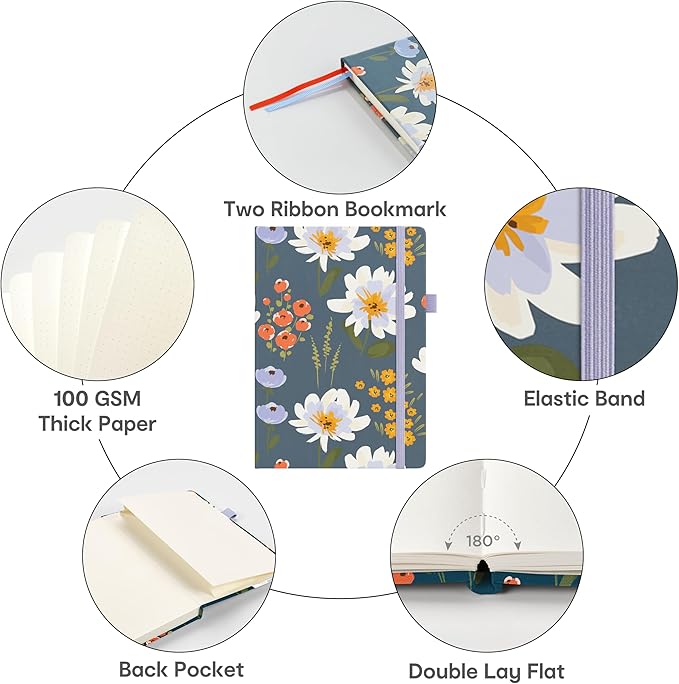 - 180° LAY-FLAT DESIGN: The lay-flat design allows for easy writing and ensures that you can utilize every page efficiently. Journaling, note-taking and planning has never been easier! 2 Bookmarks to help you find important content faster