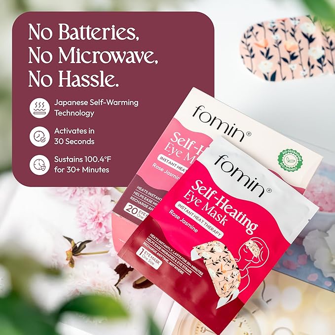 Fomin Self Heating Eye Mask - 20 Packs - Rose & Jasmine Heated Eye Mask Warm Compress for Eyes, Disposable Self Heating Steam Mask for Home, Sleep, Spa, Travel Essentials & Relaxation Gifts for Women