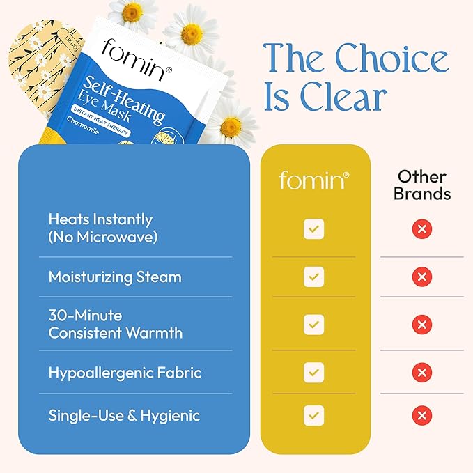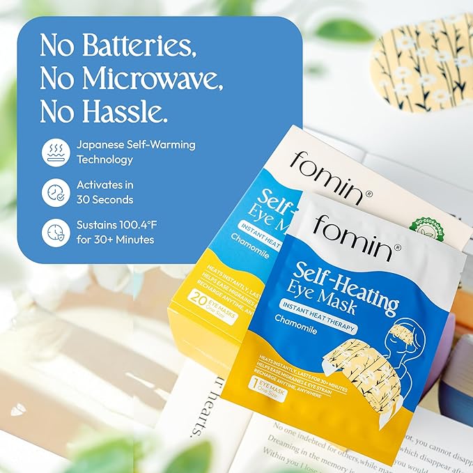 Fomin Self Heating Eye Mask - 20 Pack - Chamomile Heated Eye Mask Warm Compress for Eyes, Disposable Self Heating Steam Mask for Home, Sleep, Spa, Travel Essentials & Relaxation Gifts for Women
