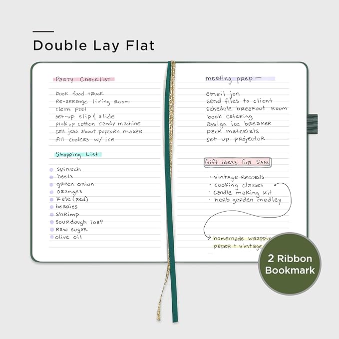 - 180° LAY-FLAT DESIGN: The lay-flat design allows for easy writing and ensures that you can utilize every page efficiently. Journaling, note-taking and planning has never been easier. 2 Bookmarks help you find important content faster