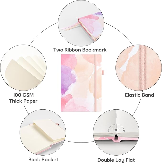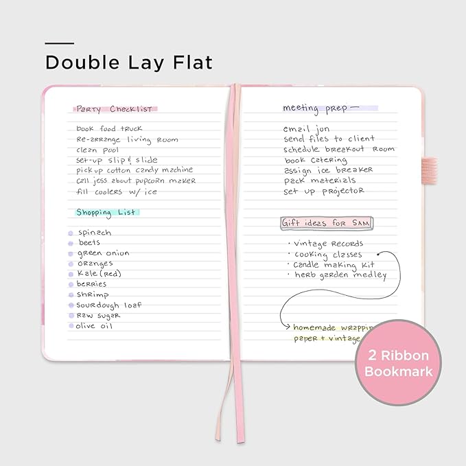 - 180° LAY-FLAT DESIGN: The lay-flat design allows for easy writing and ensures that you can utilize every page efficiently. Journaling, note-taking and planning has never been easier. 2 Bookmarks help you find important content faster
