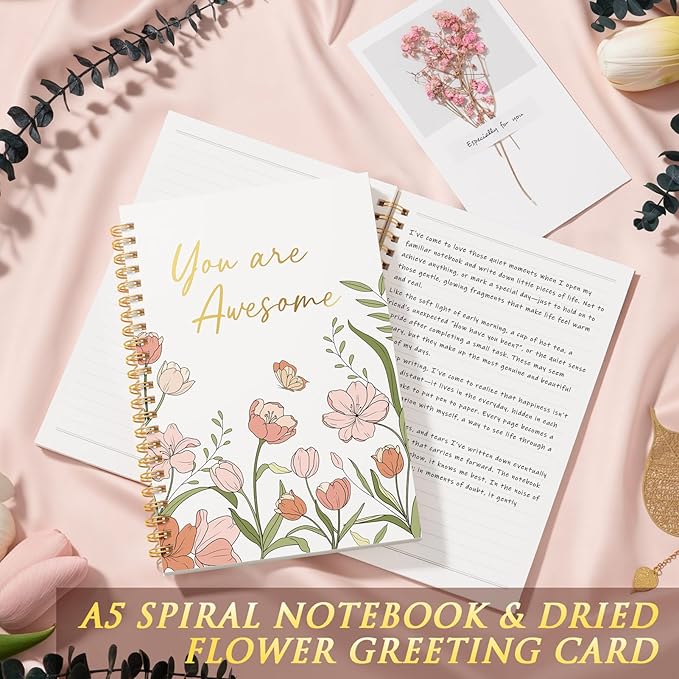 - A5 SPIRAL NOTEBOOK: The A5 spiral notebook in our thinking of you motivational comfort gifts sympathy gift baskets for women features a sturdy cover, smooth pages and an uplifting “You Are Awesome” message that provides a quiet boost of confidence. Ideal for journaling, jotting down inspirations, or writing from the heart, it’s a gentle companion for everyday reflection. A thoughtful touch to any get well soon gifts support gifts appreciation thank you gifts for mom friend wife sister daughter