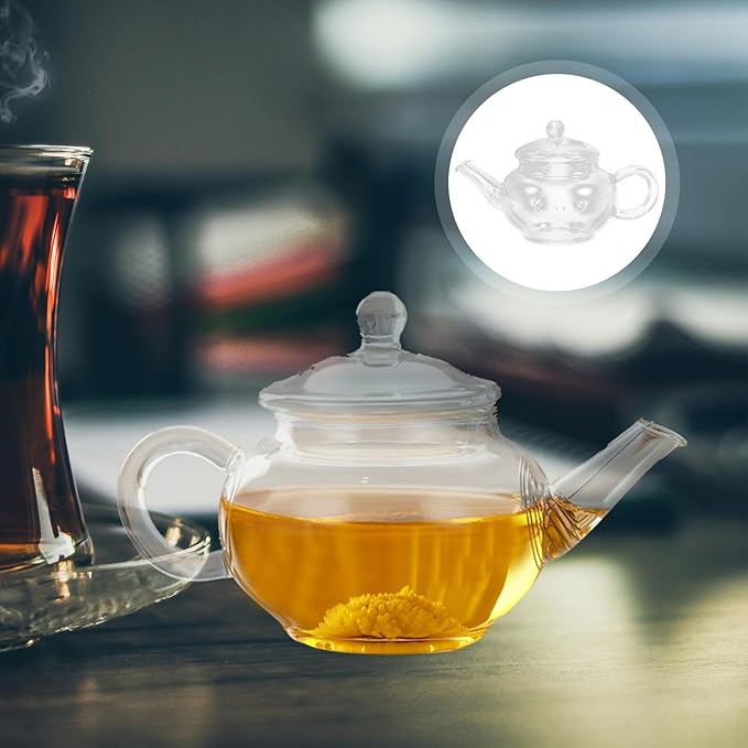 BESPORTBLE Heat Resistant Glass Tea Pitcher with Mesh Strainer Clear Small Teapot for Flower and Fruit Tea Comfortable Handle for Women and Housewarming Parties
