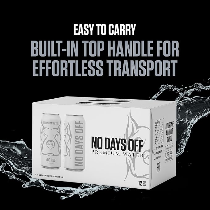 NO DAYS OFF Premium Water - 12 Pack, 16 fl oz, Still - 8.1pH Alkaline Ultra-Purified Reverse Osmosis with Electrolytes & Minerals - Calcium, Magnesium, Potassium - BPA-free 100% Recyclable Cans